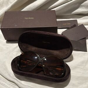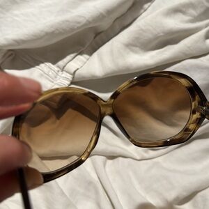 These Tom Ford sunglasses boast a striking cat-eye design with thick black frames, offering a modern and sophisticated look. The gradient lenses not only enhance the style but also provide excellent protection from the sun. Perfect for those who want to make a bold fashion statement.