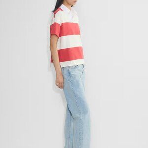 Colour is Cherry Red & Light Birch. This is a shortsleeve polo with a front button placket and relaxed fit. It’s made with Mighty Cotton™ — heavyweight 100% cotton jersey with a soft-structured feel. Mighty comfortable. Matches perfectly with the Effortless Cropped pants (sz 16), also in my closet.