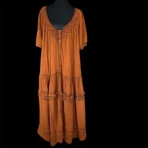 Embrace a bohemian vibe with Free People stunning brown/ orange maxi dress. Perfect for casual outings.