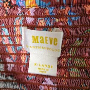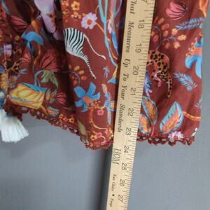 Maeve Anthropologie Top Womens XL Brown Floral Animal Print Tie Front Smocking
