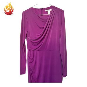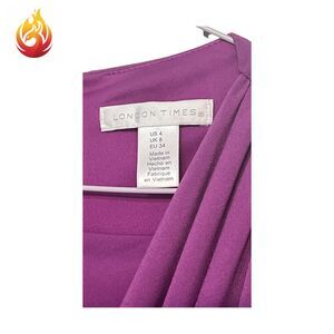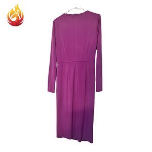 Beautiful purple London Times brand dress ruched with faux top wrap and long sleeves. Hidden back zipper. Slightly stretchy material and fully lined inside, basically double layer material - no slip needed.