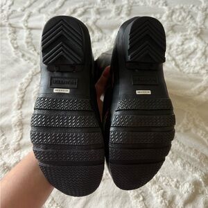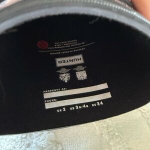 Black Hunter boots featuring vibrant rainbow designs. Ideal for wet weather. Girls size 4. Brand new, never worn.