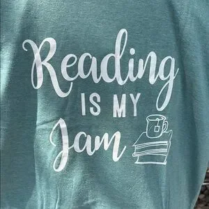 Teal graphic tee with 'Reading is My Jam' print. Perfect for book lovers. NEW ~ No tags