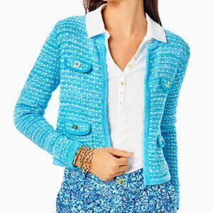 Lilly Pulitzer | Kienna Knit Cardigan Jacket Cumulus Blue Metallic Marl Size L
