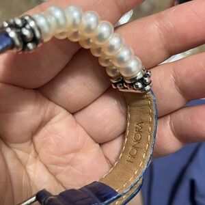 This exquisite bracelet by Honora showcases a double strand of lustrous white freshwater pearls, elegantly complemented by silver accents. The classic design is both timeless and sophisticated, making it a perfect accessory for any occasion.