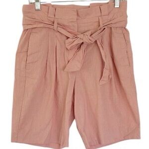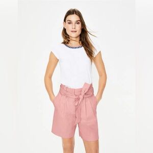 Classic Boden St Ives Linen Paper Bag Shorts Size 12 Pink Belted Pockets - NWOT
