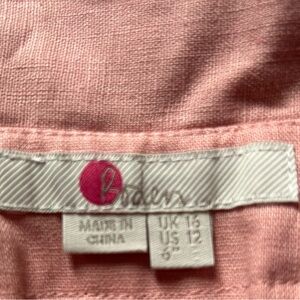Boden classic shorts in a linen cotton blend. High quality fabric with a nice drape. They feature a high waist, tie belt and pockets. The “pink” is a Lucious soft, muted warm pink/peach. These shorts are perfect for a casual outing or for the office, going out to lunch or dinner, or shopping.