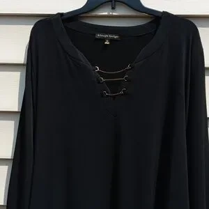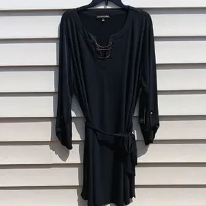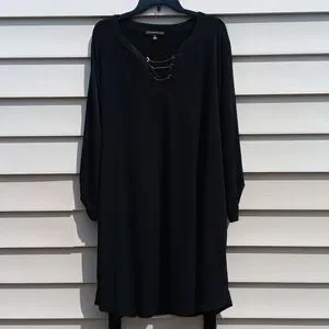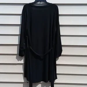 ALWAYS INDIGO Elegant Long Sleeve Black Dress with Waist String- 3X