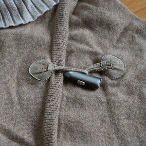 EUC Raffi two-tone cream and taupe Cashmere Turtleneck Poncho Sweater. One size. Excellent used condition. Leather toggle fastener on front, ribbed neck. 100% cashmere. A little wrinkled, but no flaws to note.