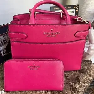 🩷🩷🩷Chic fuchsia satchel with matching wallet. Stylish and bold design. Perfect for any occasion. Genuine Leather handbag . Crossbody strap included extends approximately 40” silver like hardware.