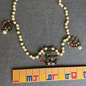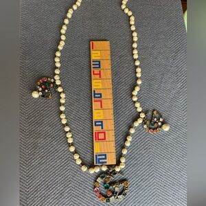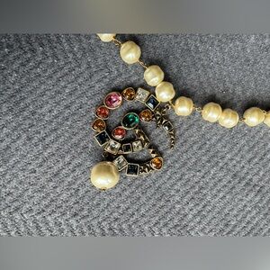 Gucci Gold Pearl Metal Double G Crystal Necklace Women's