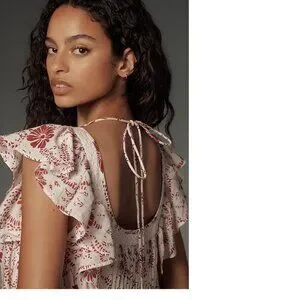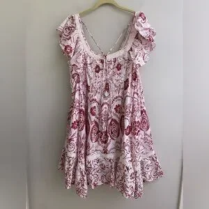 NWT Anthropologie Red and White Mini Dress Babydoll Mini Flutter White Red