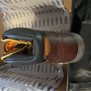 Durable and stylish, these men's work boots are perfect for tough jobs. Crafted in rich brown leather, they offer comfort and protection. Ideal for any work environment.