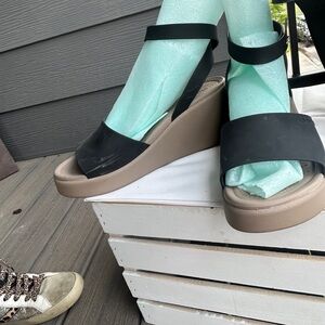 CROCS Black and Tan Wedge Sandals