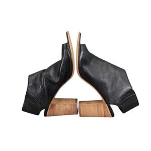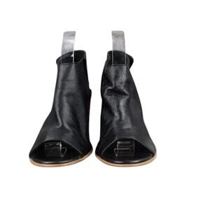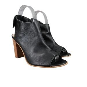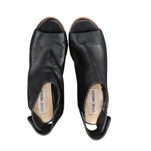 Used Steve Madden Shoes Womens 6 Booties Fashion Open Toe Ankle Strap Leather Black
