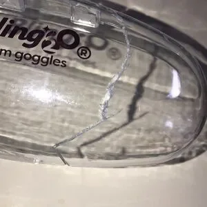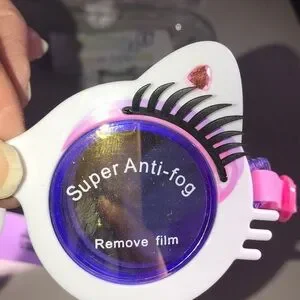 Make a splash with these girl’s stylish purple, pink, & white cat-eye swim goggles. White durable plastic frames feature the cutest cat ears & eyelashes! The ears have a dainty pink crystal in the middle. The actual goggles look like tie-dye. The strap is adjustable for a snug fit. Perfect for young swimmers, these goggles offer a fun and functional design with anti-fog lenses. The top of the case is cracked and doesn’t close on its own. I put a rubber band around it. Sure to be a hit at the beach or pool!