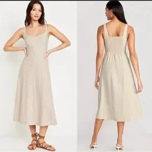 Old Navy Fit and Flare Linen Blend Midi Dress