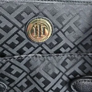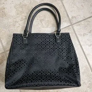 Tommy Hilfiger Black Monogram Satchel Bag Purse Classic Preppy Tote Handbag