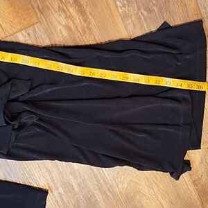 Elegant black skirt set with blue embroidered neckline. Long sleeves. Perfect for any occasion.