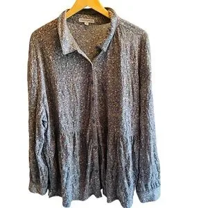 Very pretty blue floral button down with peplum hem . EUC . Size XXL