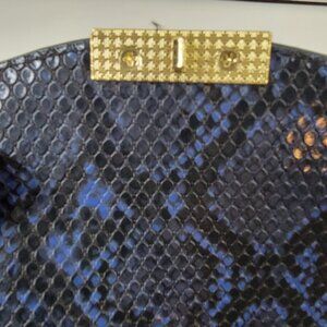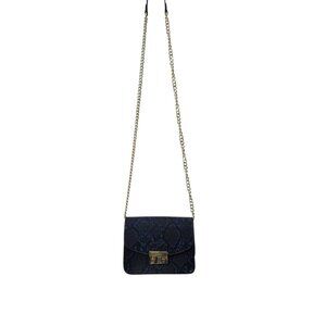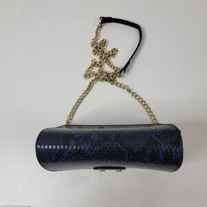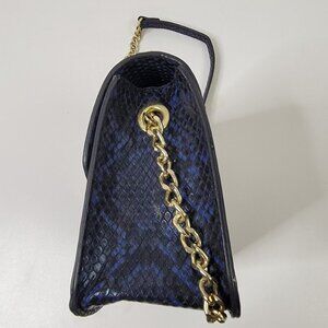 BCBG Faux Snakeskin Crossbody Bag – Blue & Black with Gold Chain