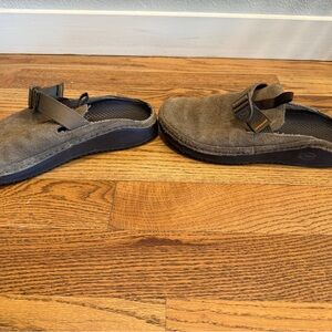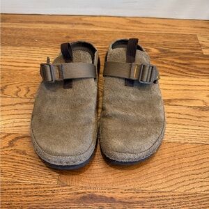 Chaco slip-on, suede sandal. Similar to Birkenstocks but with Chaco’s traditional footbed, top strap, and sole. Size men’s 10.