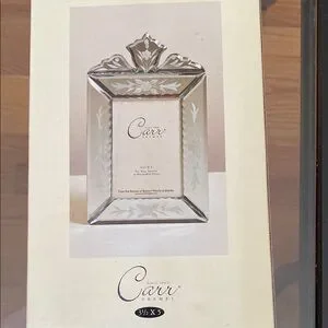 New Vintage Etched Mirror Top Arch Photo Frame. Elegant photo frame in a sleek mirror finish. Perfect for adding a touch of sophistication to any room. Holds a 3 1/2” x 5” photo. Measures 9” x 5 3/4”. Care Frames which is part of the Burnes of Boston Family of Brands.