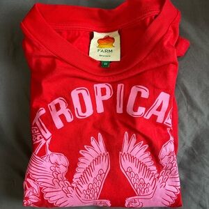 Elevate your wardrobe with the FARM Rio Red Sleeveless Boxy Muscle Tee, featuring a vibrant tropical-themed graphic design. This top combines a bold red hue with a striking white print. The sleeveless, boxy fit ensures comfort and style in one chic package. Perfect for vacation or everyday wear!