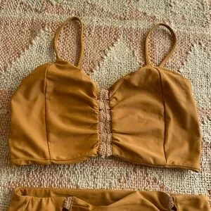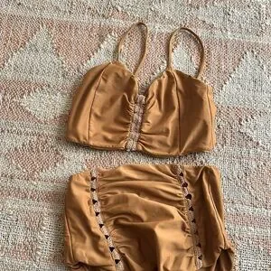 Posh Pua Leihiwa High Waisted Crochet Bikini Set in Ochre Tan Brown