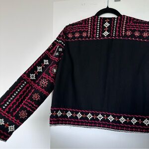 ZARA Ethnic Boho Embroidered Jacket Red Black Beaded Embellished Medium