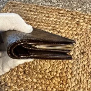Stylish checkered brown wallet perfect for any occasion. Compact and elegant design.