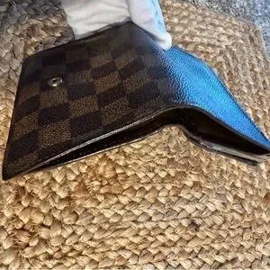 works fine. Does have some light wear on corners/ interior good condition. Normal wear the two inside pockets. Do have some peeling not sticky/ snap works great kiss lock works great/the exterior edges have been edge coated to improve the look please ask any questions please see pictures closely thank you. guaranteed 100% Authentic Louis Vuitton wallets are made of sturdy leather. Fakes may smell like plastic or chemicals. please please read my reviews/all offers are considered/bundle save 20%/