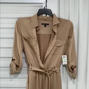 INC International Concepts Tan Jumpsuit with Collared Neckline