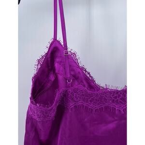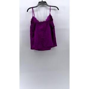 FOREVER 21 Women's Purple Lace-Trim Spaghetti Strap Satin Cami Top SZ S