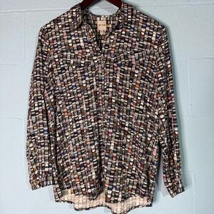 Excellent preowned condition from smoke free home. Super soft and flowy top. Button down v-neck line. Measurements on flat lay.