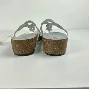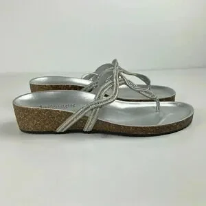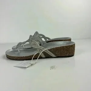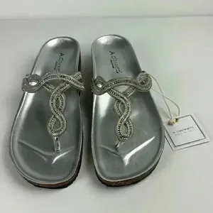 SILVER SANDALS A.GIANNETTI MADE IN ITALY SZ 9 NWT CORK SOLE THONG W/ RHINESTONE