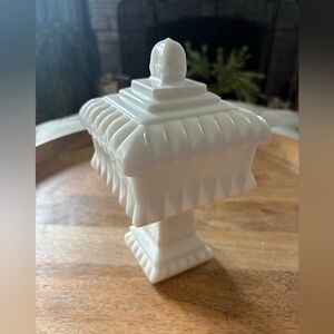 Vintage Milk Glass Wedding Box Covered Candy Dish