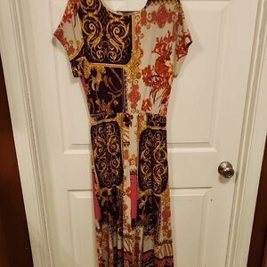 Olivia Matthews Pink and Orange Maxi Sundress V-Neck Resort Wear
