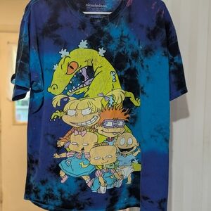 Celebrate the nostalgia of the 90s with this Nickelodeon Rugrats short sleeve tee, featuring beloved characters in vibrant colors against a deep blue tie-dye background. The classic Rugrats logo adds a touch of retro charm, making it a perfect choice for fans of the iconic animated series. Enjoy the casual comfort and playful style of this standout piece in your wardrobe.