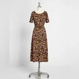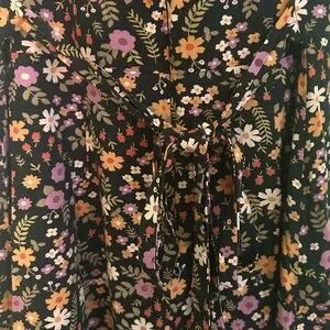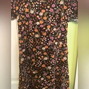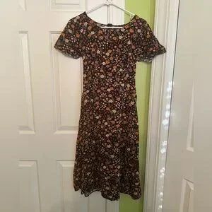 Comfy and pretty midi dress with a colorful floral pattern and waist tie. Shows some signs of wear but still has a lot of life left in it, no flaws otherwise. Size AU 10, US 8.