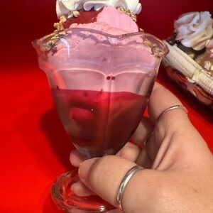 Add a playful touch to your home with this delightful decorative ice cream sundae and banana split set. Featuring vibrant red, pink, and white colors, this charming accent is perfect for any space.