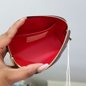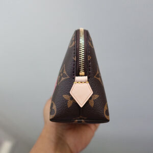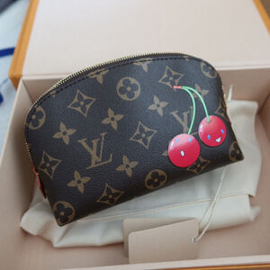The practical Cosmetic Pouch PM is uplifted with joyful touches from the celebratory re-edition of the cross-category Louis Vuitton x Takashi Murakami collection. It is crafted from the House’s classic Monogram coated canvas with emblematic natural leather accents and a gold-toned zipper fastening. The renowned Japanese artist’s signature cherry motifs add a burst of color to the outside, which is complemented by a bright red lining.