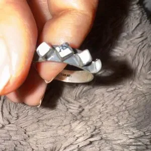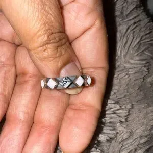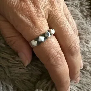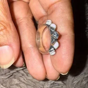 This Sterling Silver MEX hallmarked band ring is accented with square cut stones, possibly Buffalo Turquoise, set on point ends in a diamond pattern, the ring is approximately a size 7-8. **I wish Poshmark would allow an option for gender neutral as this ring would work for either male or female