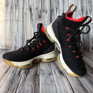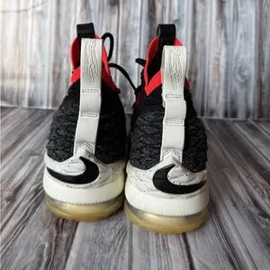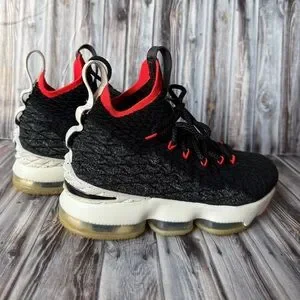 Nike LeBron 15 Black Bright Crimson Basketball Shoes size 4.5Y