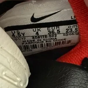 Shoes are in good condition. No snags or frays. No fogging in air pockets but there is some yellowing. Size 4.5Y no box