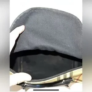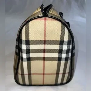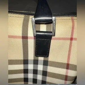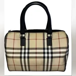 Chic Burberry satchel with iconic plaid design. Beige and black colors. Ideal for any occasion.