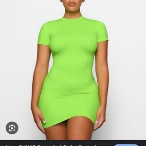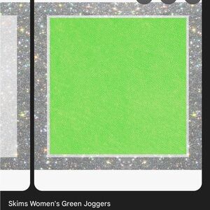 Neon Green Skims Lounge French Terry Like Wide Leg Drawstring Pants. Super baggy and medium weight pants. The truest color of these is the pic of the skims dress (NOT FOR SALE) the others are a bit off. Comfortable and stylish. Like new no signs of wear. Best for people 5’6” and up.