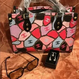 Customize Tote made with real leather and Vegan feels great understated it’s custom made with fashion Sunglasses and & #5 Earring set NWT