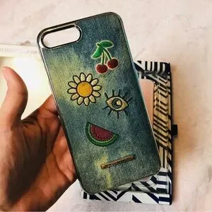Protect your phone in style with the Rebecca Minkoff blue iPhone case. Featuring playful embroidered designs, this case combines fashion with functionality.