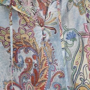VOY Paisley Tie Neck Blouse Flutter Sleeve Small Boho
